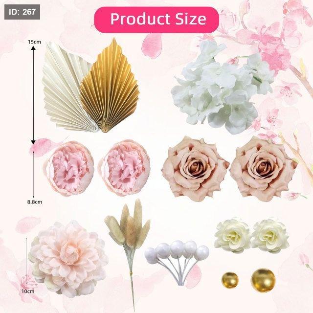 مجموعة من الورد الصناعي والكرات وورق الديكور